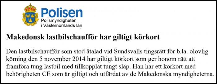 – Det blir den neppe, ikke fra vår side i alle fall, sier informasjonssjef Børje Öhman i Polismyndigheten i Västernorrlands län til lastebil.no