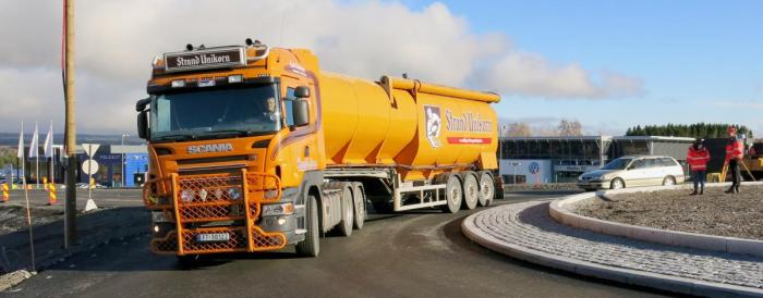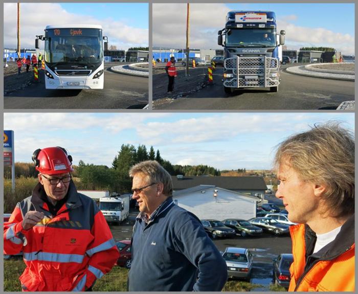 – For yrkessjåførene er det viktig at utkjøringene blir store nok, «skjørtet» i midten må være overkjørbart, trafikkøyene på utsiden bør også være overkjørbare og kansteinen må ha avrundede kanter, sier han og retter en takk også til Taale Stensbye i Statens vegvesen for at han stilte opp.