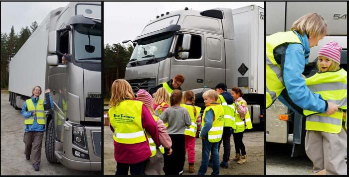 Han delte også ut refleksvest fra Tandberg Transport og premier fra Norges Lastebileier-Forbund (NLF) til elevene fra 1. til 3. klasse som var med på denne spesielle skoledagen.