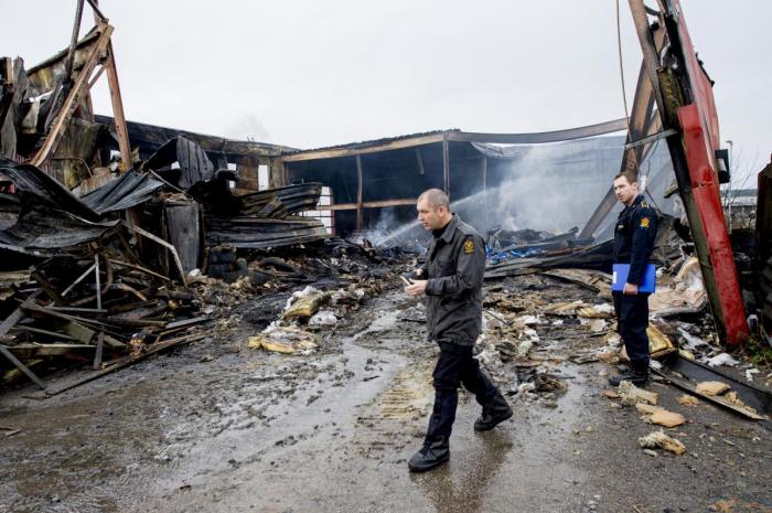 Det var i to-tiden natt til mandag at politi og brannvesen fikk melding om at en kontorbygning sto i full fyr. Fire timer senere var hele bygningen nedbrent.