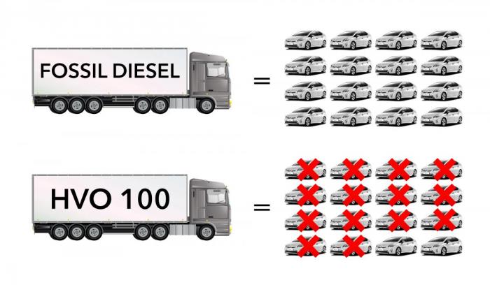 I tillegg til Euro VI-teknologi som reduserer det lokale utslippet til et mikroskopisk nivå, har også nye, innovative drivstoff-varianter nå blitt tilgjengelig. Hydrogenert vegetabilsk olje (HVO) reduserer CO2-utslippet med 65-85 prosent, noe som gjør at også det globale utslippet minskes betraktelig. Det er fortsatt utfordringer knyttet til tilgjengelighet og opphav, men HVO vil likevel spille en viktig rolle i tiden som kommer. Inntil andre fornybare alternativer blir tilgjengelig, vil syntetisk biodiesel fungere som et viktig steg mot en klimanøytral transportnæring.