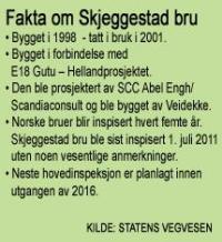Regionsjef Olav Vefald i NLF er glad for at ingen menneskeliv gikk tapt da Skjeggestad Bru på E18 i Vestfold knakk sammen i går. Han og administrerende direktør Geir A. Mo er likevel bekymret for trafikksikkerheten på omkjøringsveiene.