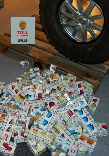 Tollerne fra Ørje søkte gjennom bilen og fant 197 ecstasy-tabletter, 116 liter alkohol og 23 850 sigaretter.