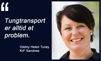 – Tungtransport er alltid et problem. Det er bra å få én dag hvor man slipper dette langs veiene. Da kan vanlige bilister komme seg lettere frem. I andre europeiske land er det ikke uvanlig med restriksjoner, sier bystyremedlem Oddny Helen Turøy i Sandnes til Dagen.