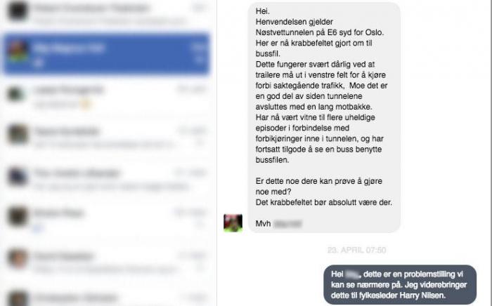 "Hei. Henvendelsen gjelder Nøstvettunnelen på E6 syd for Oslo. Her er nå krabbefeltet gjort om til bussfil. Dette fungerer svært dårlig ved at trailere må ut i venstre felt for å kjøre forbi saktegående trafikk, noe det er en god del av siden tunnelene avsluttes med en lang motbakke. Har nå vært vitne til flere uheldige episoder i forbindelse med forbikjøringer inne i tunnelen, og har fortsatt tilgode å se en buss benytte bussfilen. Er dette noe dere kan prøve å gjøre noe med? Det krabbefeltet bør absolutt være der", skrev et NLF-medlem til oss nylig via våre Facebook-sider.