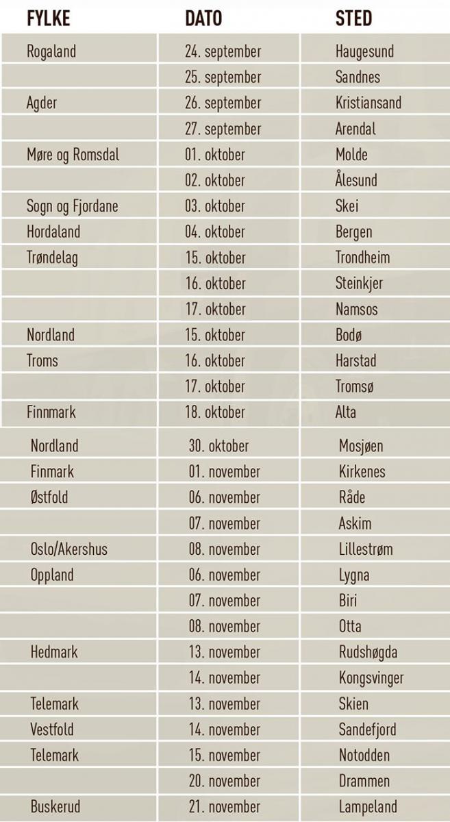 Finn dato, sted og tidspunkt som passer deg i kalenderen nedenfor!