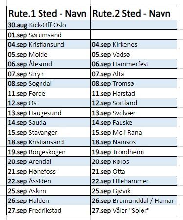 Her er resieruten for turnéen. For påmelding, kontakt din regionsjef.