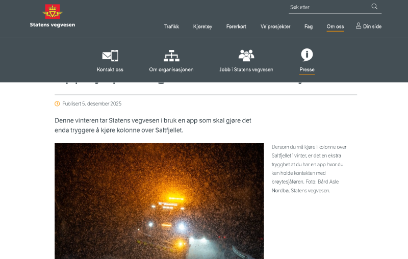 Dersom du er yrkessjåfør eller privatperson som kjører ofte over Saltfjellet, kan du gjerne laste ned appen allerede, og ha den klar på mobilen.