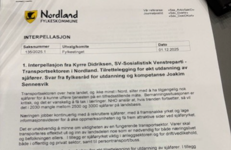 Nordland er et av de fylkene i Norge hvor kryssløp (fra Studiespes. til transport/logistikk) ikke er mulig. Vi har fått litt drahjelp fra Kyrre Didriksen (SV) som fremmet denne saken på fylkestinget sist uke.