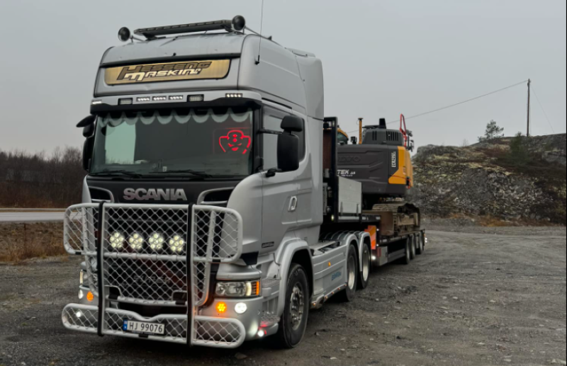 Dagligleder Runar Hivand og Bjørnar Olsen som driver transportvirksomheten hos Hesseng Maskin fikk denne uken besøk av adm.dir. Knut Gravråk