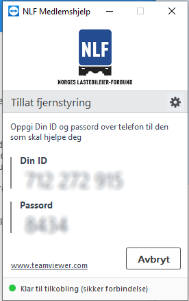 For at din kontakt hos NLF skal kunne hjelpe deg på din PC eller Mac så må du ha et enkelt lite program som heter Teamviewer - bruk denne lenken for å installere: https://get.teamviewer.com/vzpgfvn